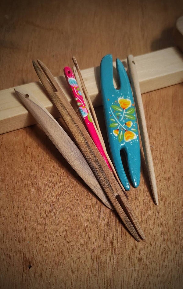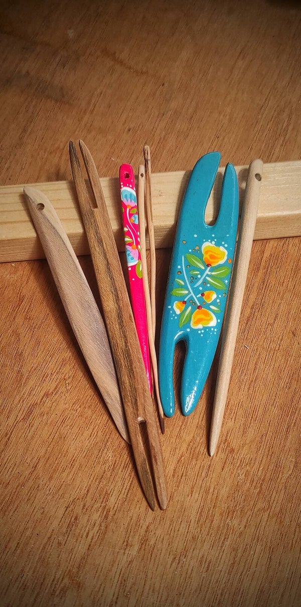 - Un lot d'aiguilles et navettes en bois variées (celui des photos 3 et 4)