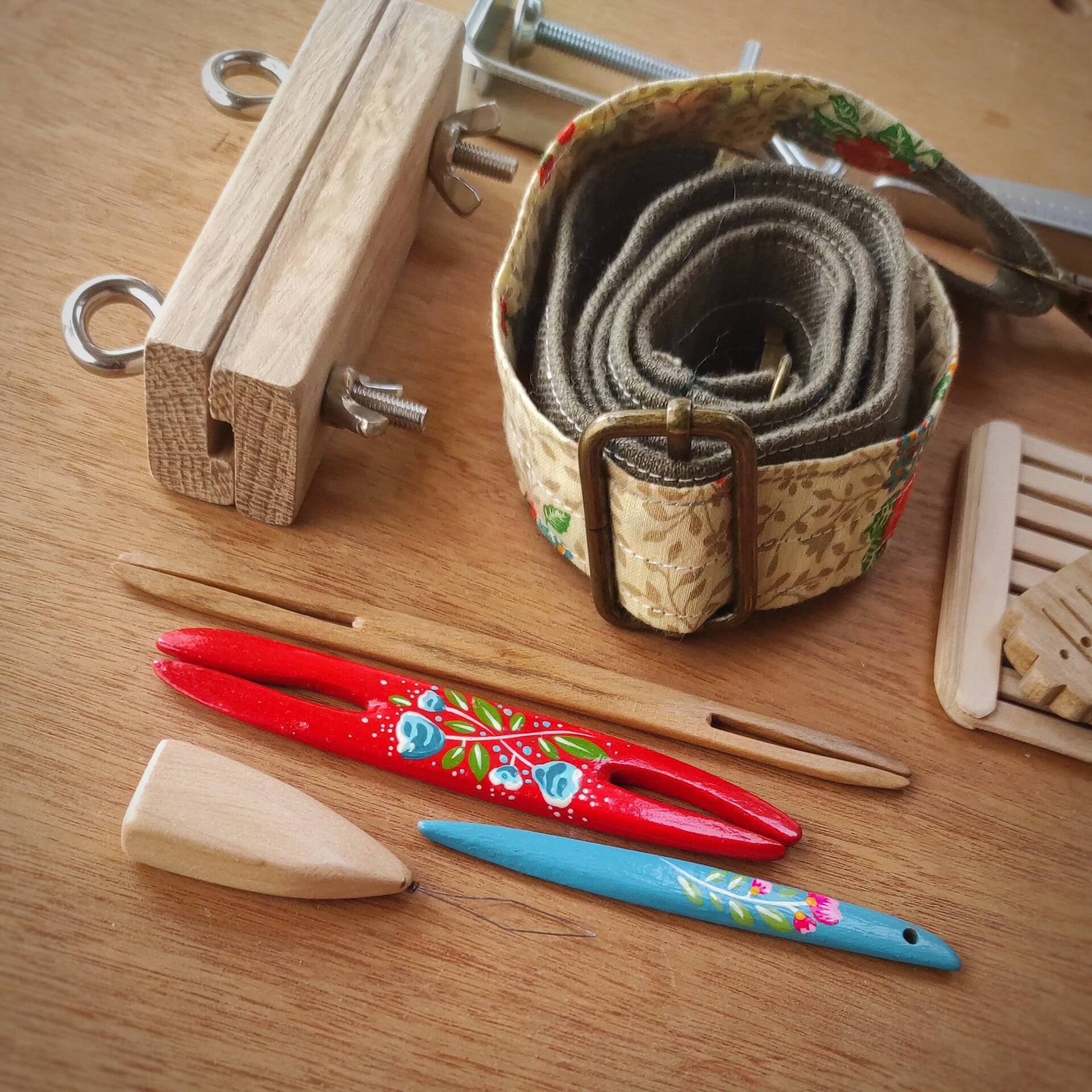 Coffret/kit pour s'initier au tissage avec un petit peigne envergeur.