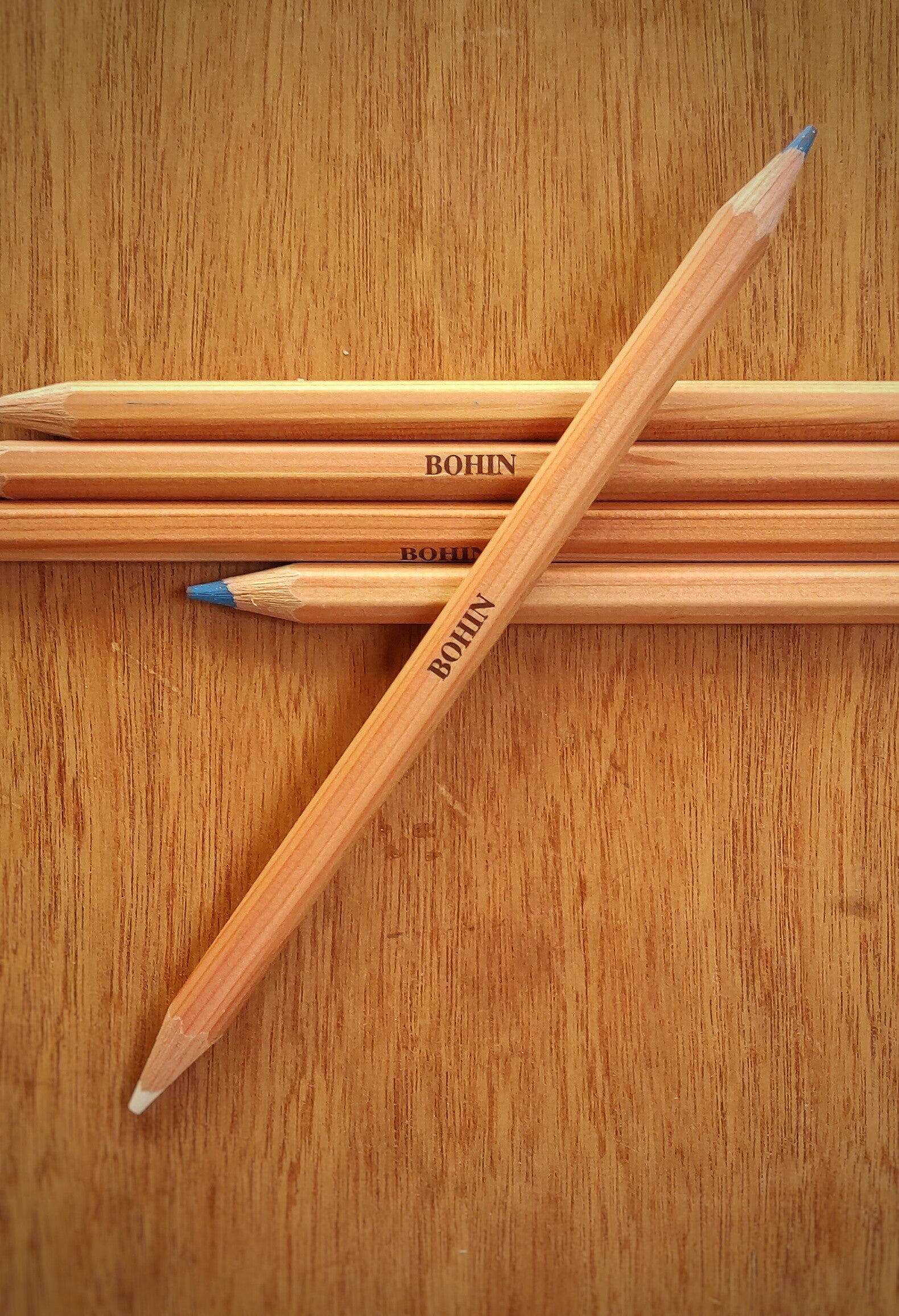 Crayon-craie Bohin, bicolore (une pointe blanche, une pointe bleue).