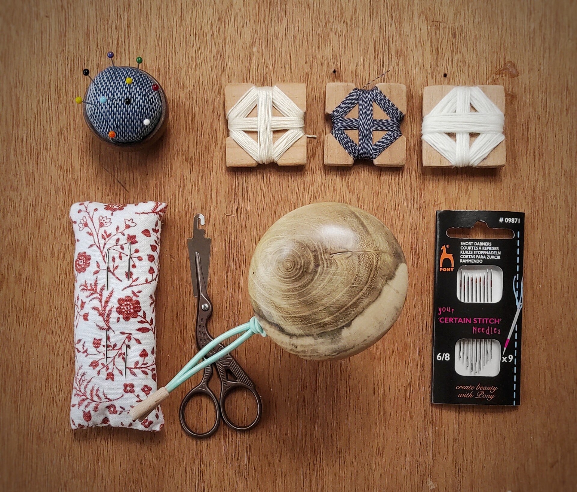 - un pique-épingle/affuteur avec 10 épingles tête de verre.