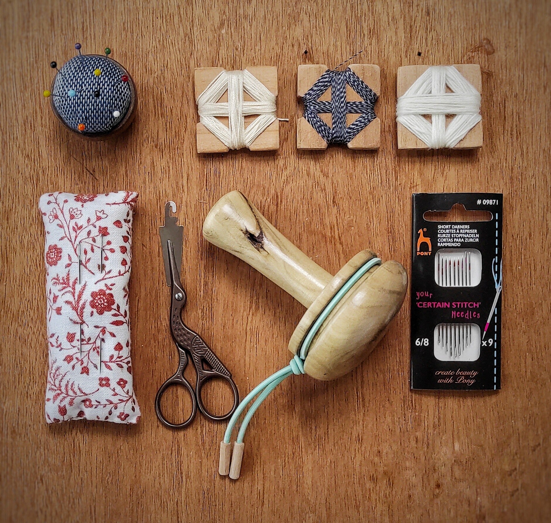 - Un échantillonnage de fils variés (fil à jean, coton et laine)