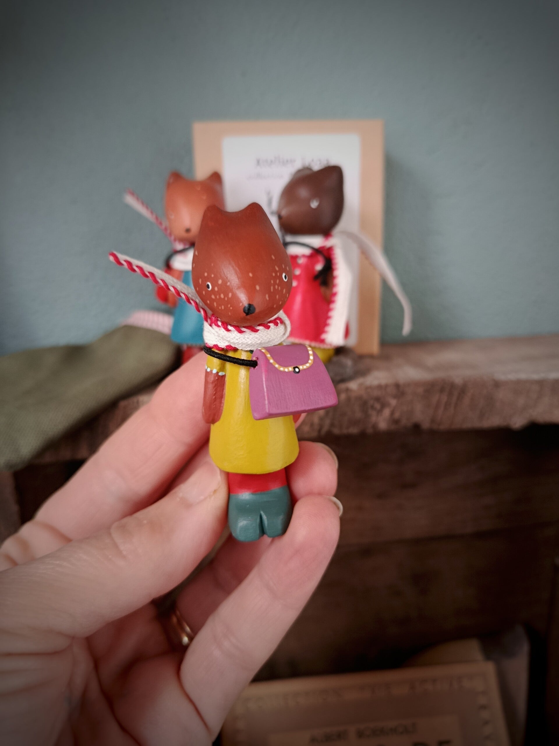 - Renard 2, vêtements ocre/vert et rouge