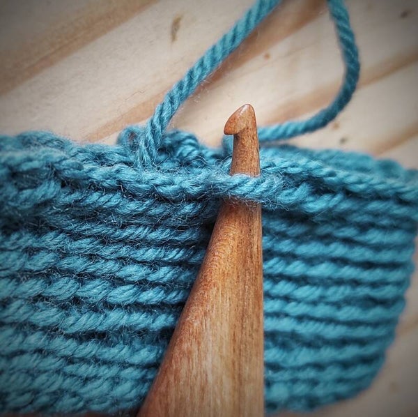 Ce crochet en bois, à la forme si particuliere, est conçu pour une meilleur ergonomie lors du travail au point "de glissement" ou "point coulé".