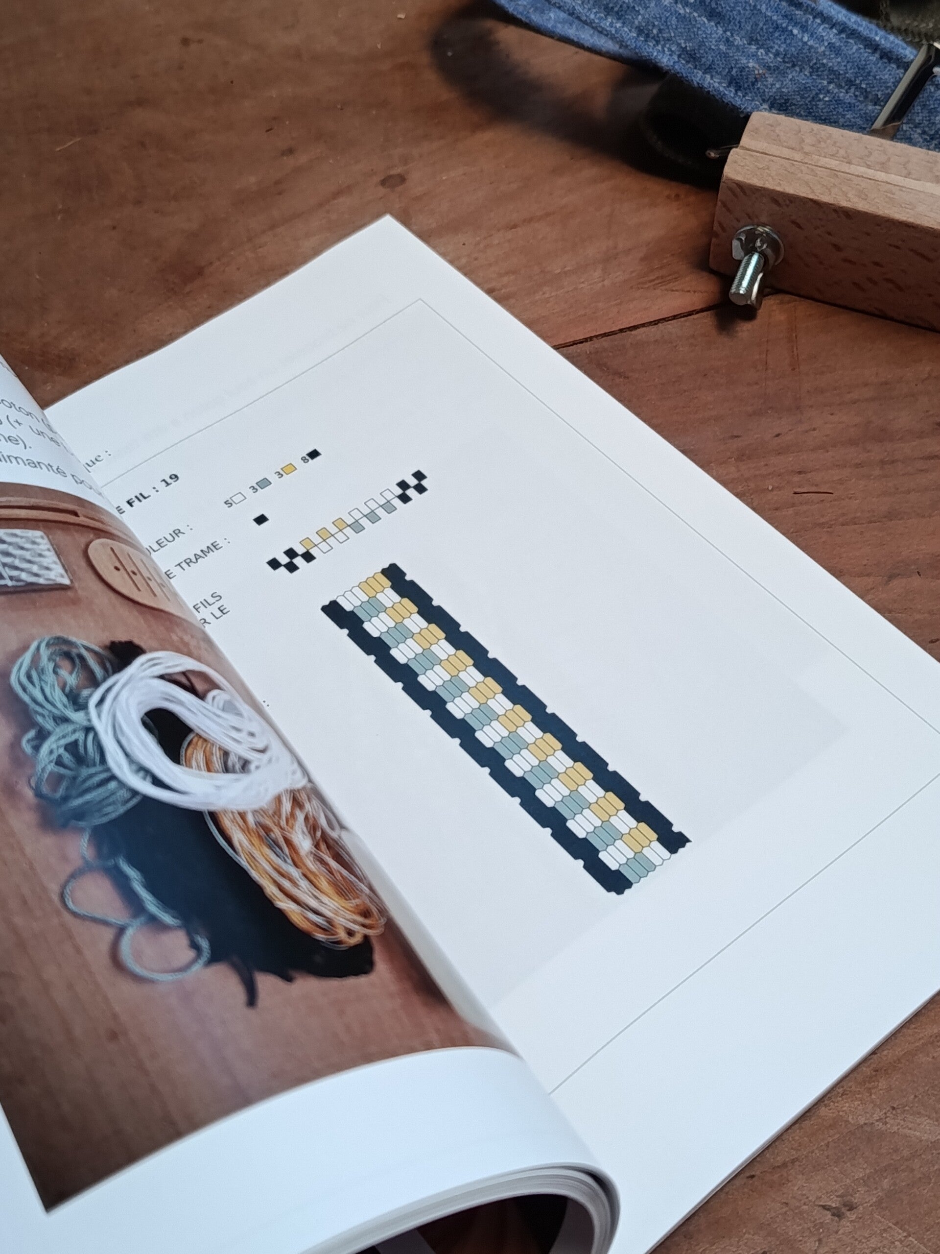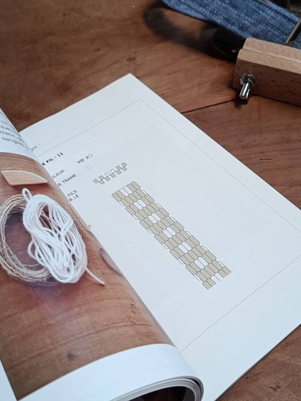 Livre-guide pour s'initier au tissage de galons, rubans, lacets, avec un peigne de tissage et une navette;